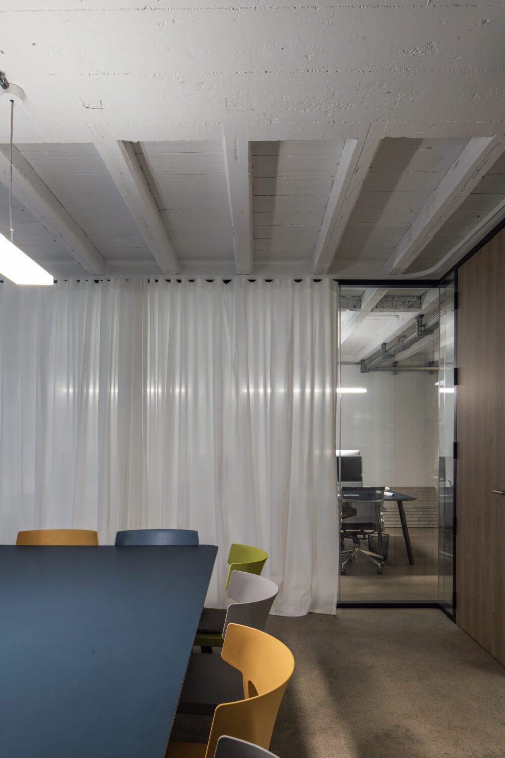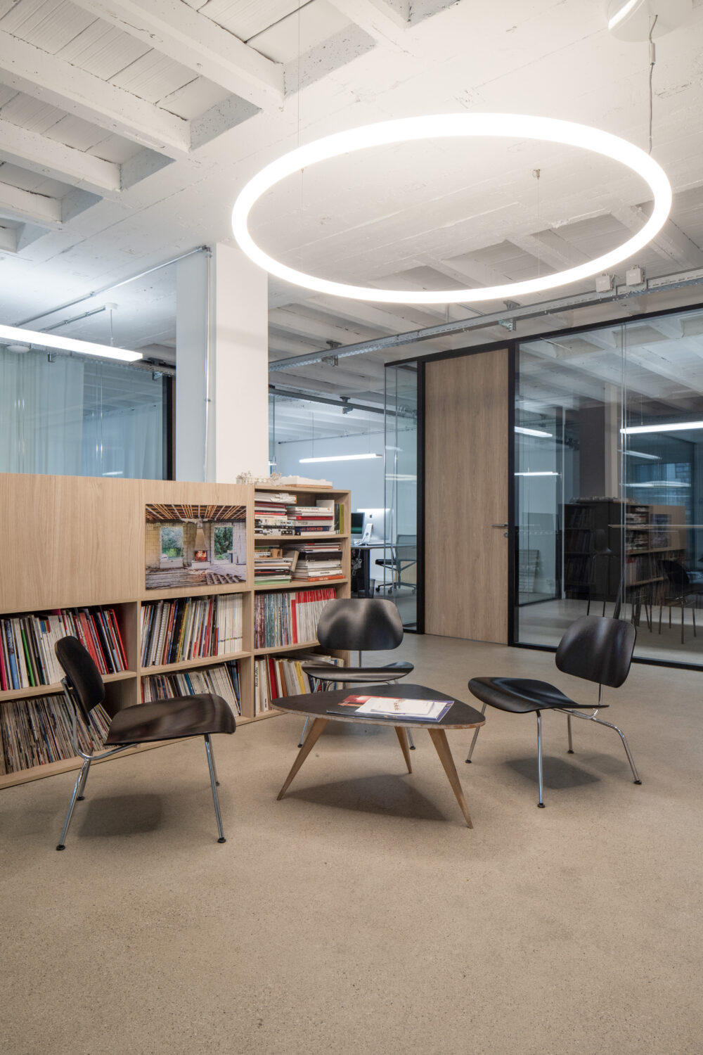 Cette disposition favorise la lumière naturelle, la transparence et la collaboration tout en préservant des espaces intimes. Un équilibre entre fonctionnalité, esthétique et bien-être au travail, en phase avec l’identité du studio.