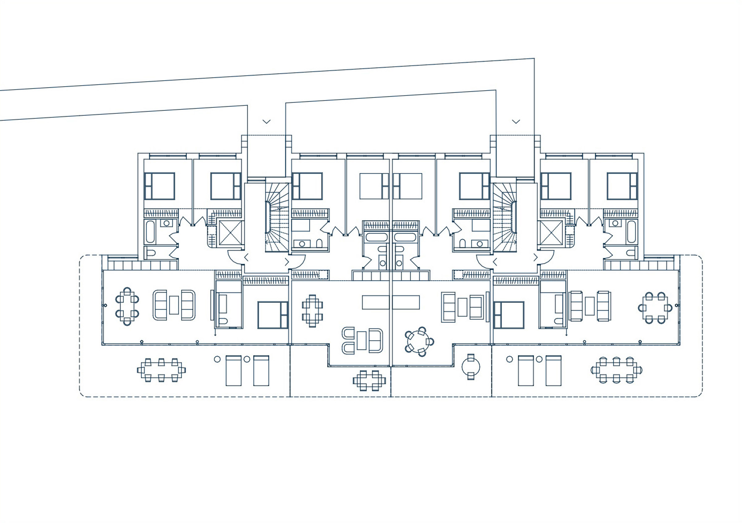 La typologie des logements a été pensée pour répondre aux besoins de différentes configurations familiales, avec des appartements de 2 ou 4 chambres. Les espaces de vie – salons et salles à manger – sont conçus dans un esprit de fluidité et de générosité, s’ouvrant largement sur l’extérieur grâce à de grandes terrasses d’environ 3,50 mètres de profondeur. Véritables prolongements de l’habitation, ces terrasses constituent des espaces extérieurs habitables utilisables en toute saison, offrant un confort de vie comparable à celui d’une maison individuelle.