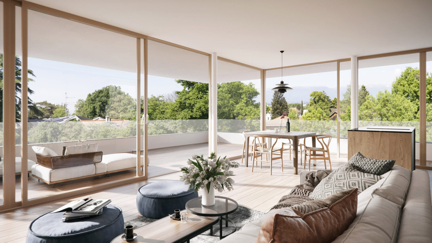 Le projet architectural de 12 logements situés dans le quartier résidentiel recherché de la Californie à Vésenaz s’inscrit dans une volonté de proposer un habitat qualitatif, confortable et durable, tout en respectant l’identité paysagère du site. Conçu comme un développement peu dense, il privilégie l’espace et la relation au végétal. Les appartements du rez-de-chaussée bénéficient de jardins privatifs, tandis qu’une vaste surface de jardin commun favorise la convivialité entre résidents et crée un cadre de vie agréable et verdoyant.
