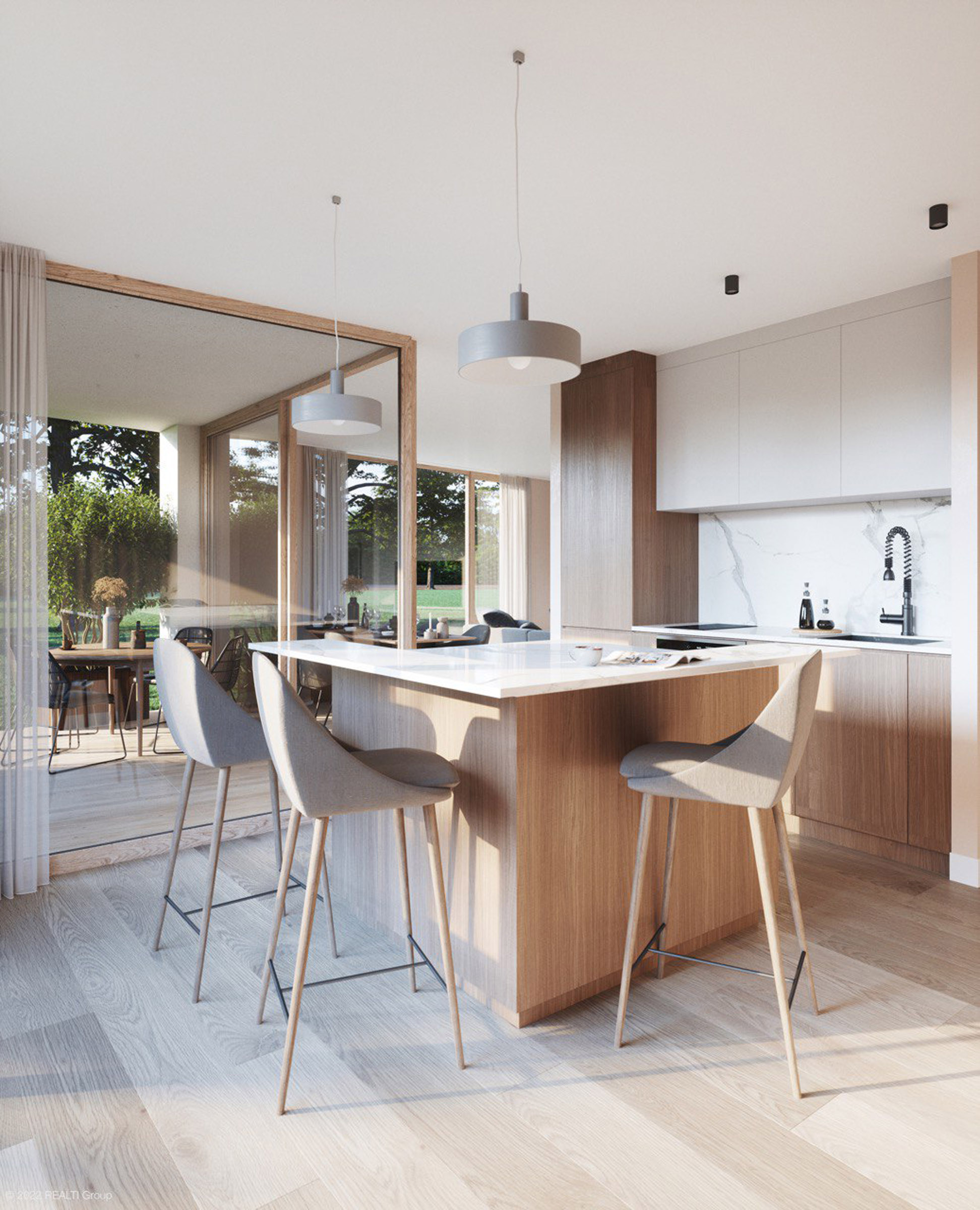 Ce projet illustre une densification douce et respectueuse du contexte, en tenant compte de l’échelle du bâti et du paysage arboré, où l’architecture raffinée s’efface au profit de la beauté naturelle du site.