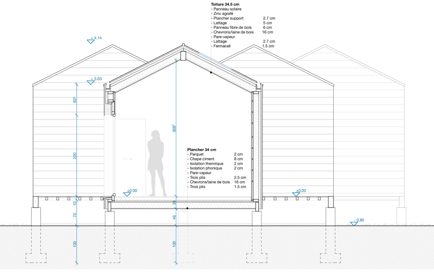 Les Tiny Houses sont conçues en bois local, avec une isolation biosourcée et des systèmes énergétiques basés sur le solaire. Posées sur plots réversibles, elles peuvent être déplacées et remontées ailleurs, garantissant la réversibilité du site.